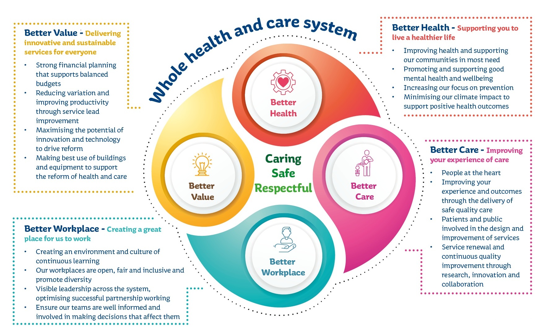 - We are all safe and are supported to improve our health and wellbeing